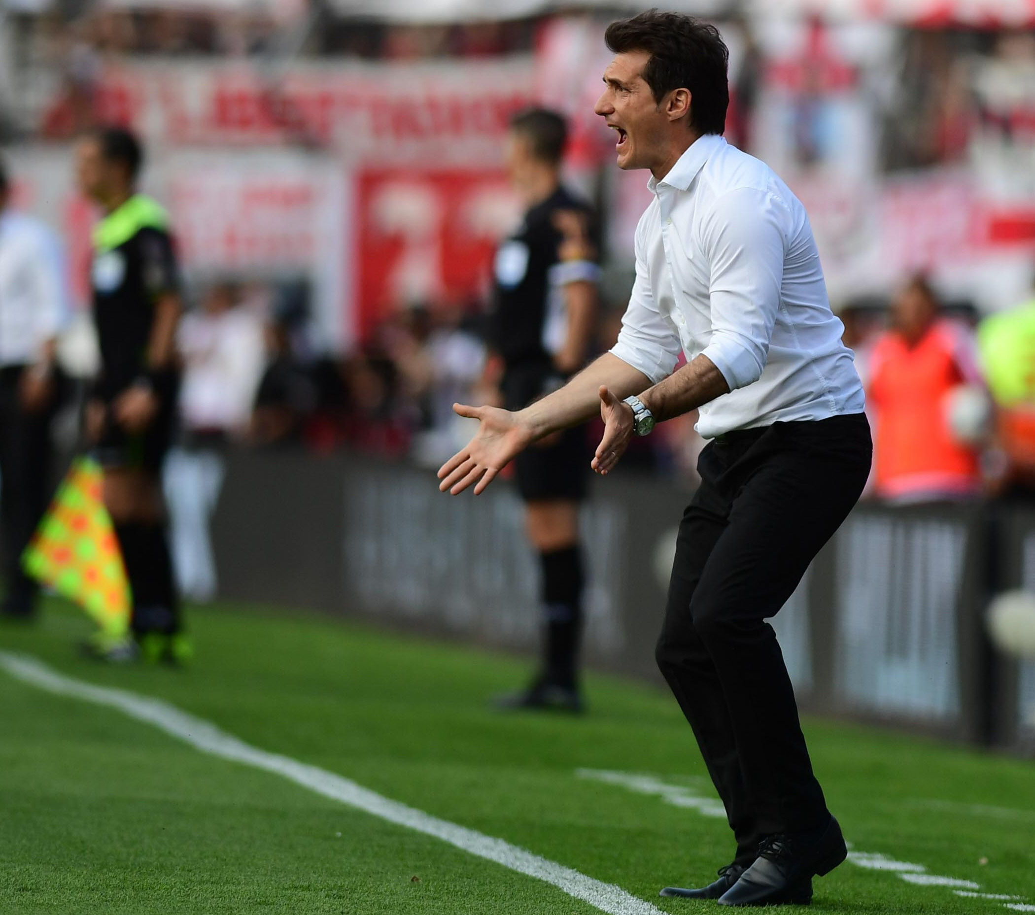 El entrenador de Boca, Guillermo Barros Schelotto, se mostró exultante tras la victoria de su equipo sobre River en el estadio Monumental.