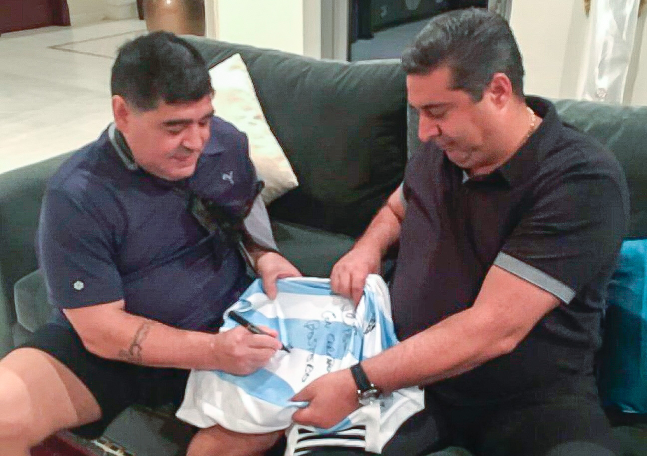 Estampa. Maradona firmó una camiseta del seleccionado argentino junto a Angelici, que será subastada en la cena anual solidaria que realizará Boca.