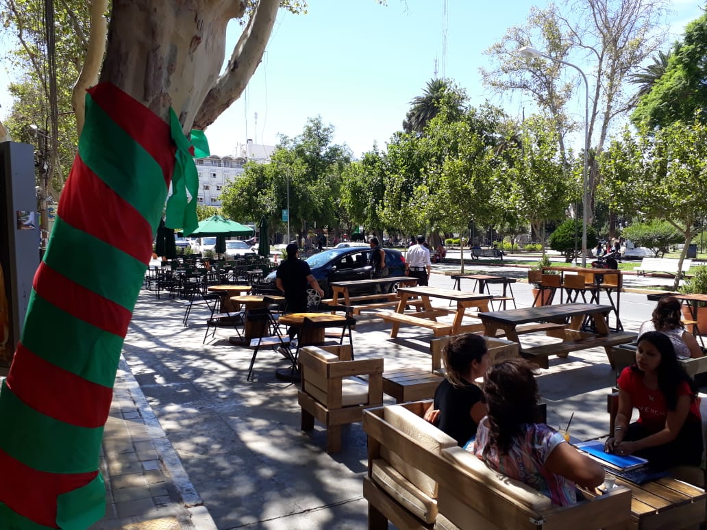 Un lector envió una imagen y el siguiente comentario: "Este auto estacionado en medio de los cafés que pusieron precariamente sobre calle Rivadavia. Es tierra de nadie".