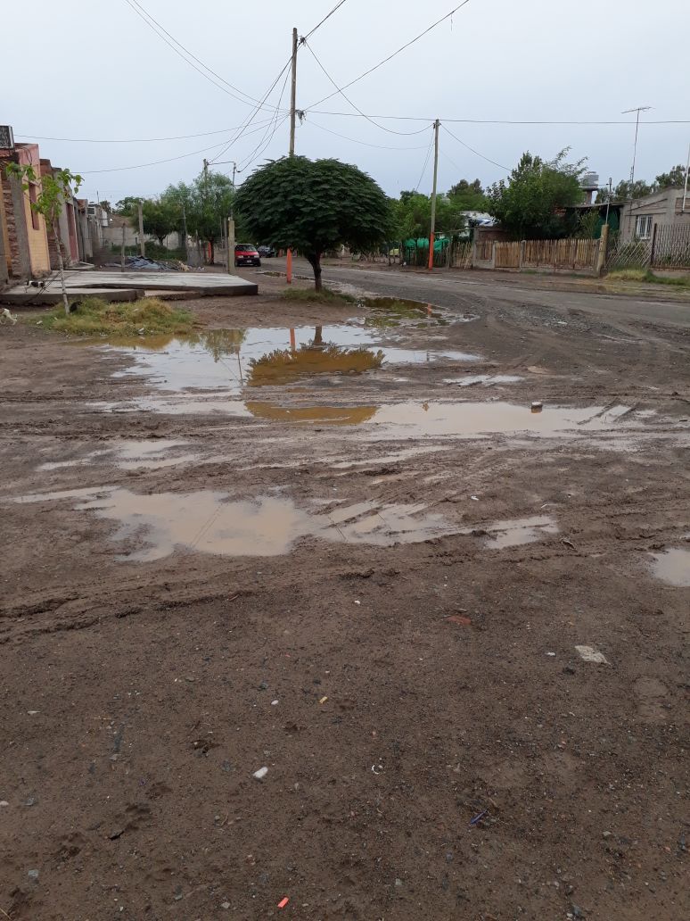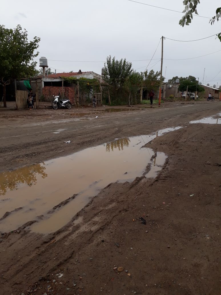 Según comentaron, el barrio fue entregado hace 12 años y nunca pavimentaron ni construyeron acequias. Por eso, cuando llueve las arterias quedan completamente llenas de barro y anegadas.