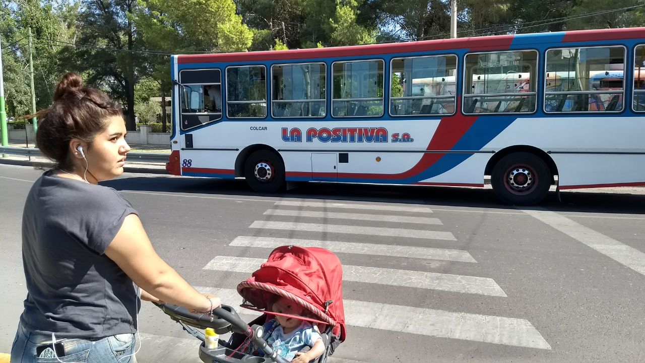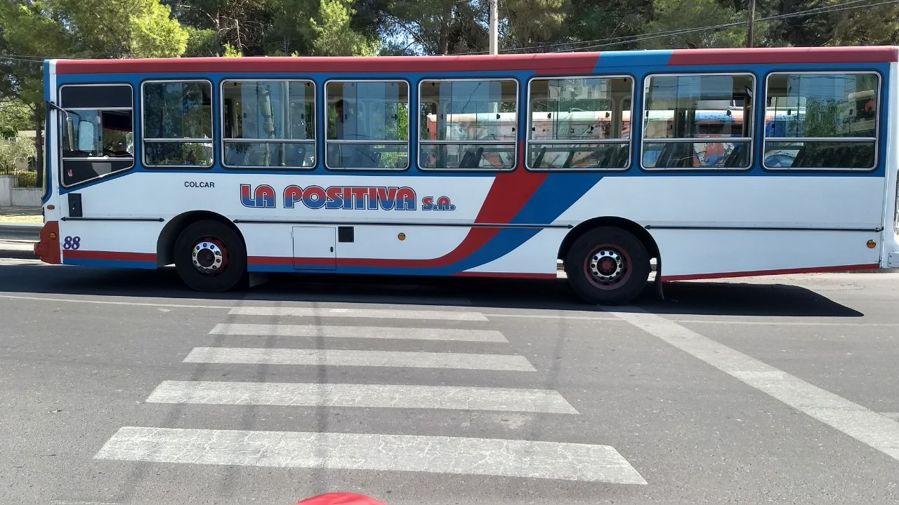 Un lector envió imágenes de un colectivo de la empresa La Positiva estacionado sin pasajeros ni conductor sobre la senda peatonal.