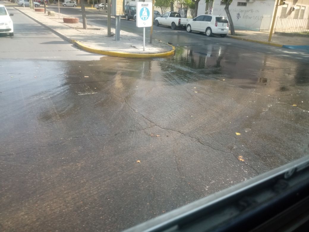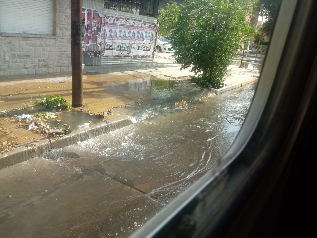 En la mañana del viernes, la calle Mitre a antes de Alem, en Capital, parecía un río. Es que, las cunetas estaban sucias, se rebasaron y el agua comenzó a salir.