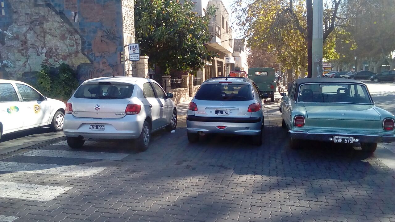 Un lector envió una imagen y el siguiente comentario: "En la esquina de Gral Acha y Agustín Gómez hay una estación de GNC. En la vereda estacionan y también sobre la senda peatonal, ¿quién controla?".