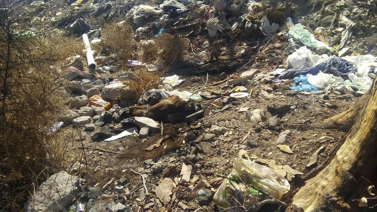 Un lector envió imágenes tomadas a orillas de la calle Comandante Cabot, antes de Meglioli, que se ha transformado en un basural en el que hay hasta perros muertos.