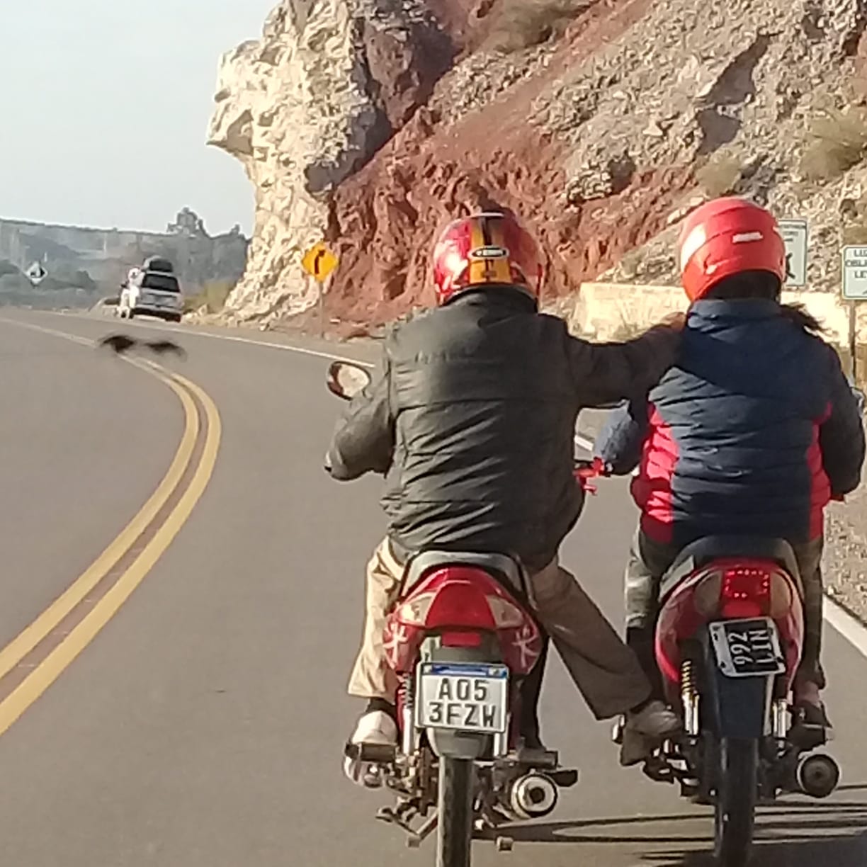 Una lectora envió imágenes tomadas en la Ruta Interlagos en las que se ve a dos conductores de moto circulando a la par y tomados uno de otro.