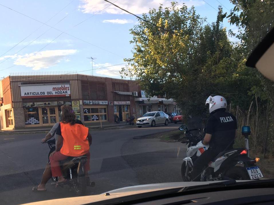 Un lector envió una imagen y el siguiente comentario: "Esto pasó a las 20:20 de este lunes en la esquina de Cipolletti y Coll. Una vergüenza, el policía con el celular y al lado una moto con ambos sin casco ni patentes. La indiferencia en su máxima expresión!".