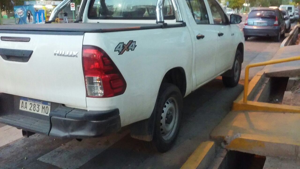 El domingo 23 de abril, a las 19.10, en avenida Libertador al 3700 Oeste, una camioneta mal estacionada y obstruyendo la rampa y la senda peatonal.