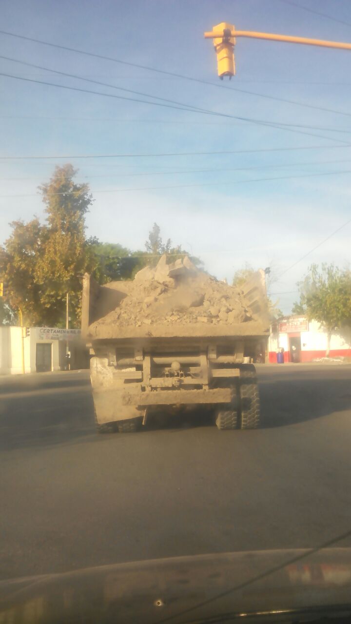 Un lector de DIARIO DE CUYO envió una imagen de un camión circulando por Calle 5 y Lemos, en Rawson. Está trasladando una gran cantidad de escombros y su compuerta se encuentra abierta.