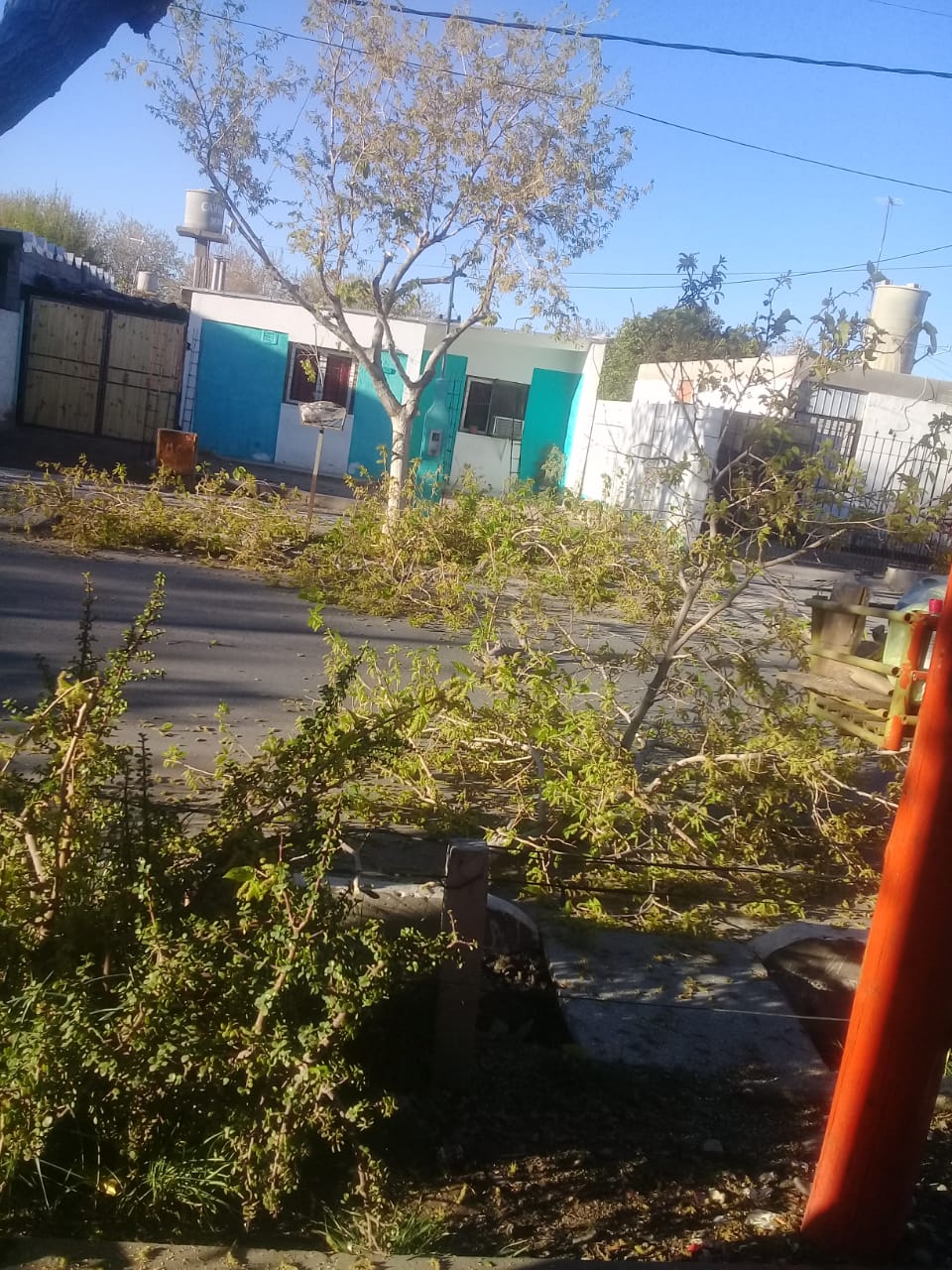 Un lector envió una imagen y el siguiente comentario: "En el barrio Los Pinos, en Chimbas, ayer (por el martes 4 de septiembre) estaban podando de forma indiscriminada con los árboles todos brotados. Una locura".