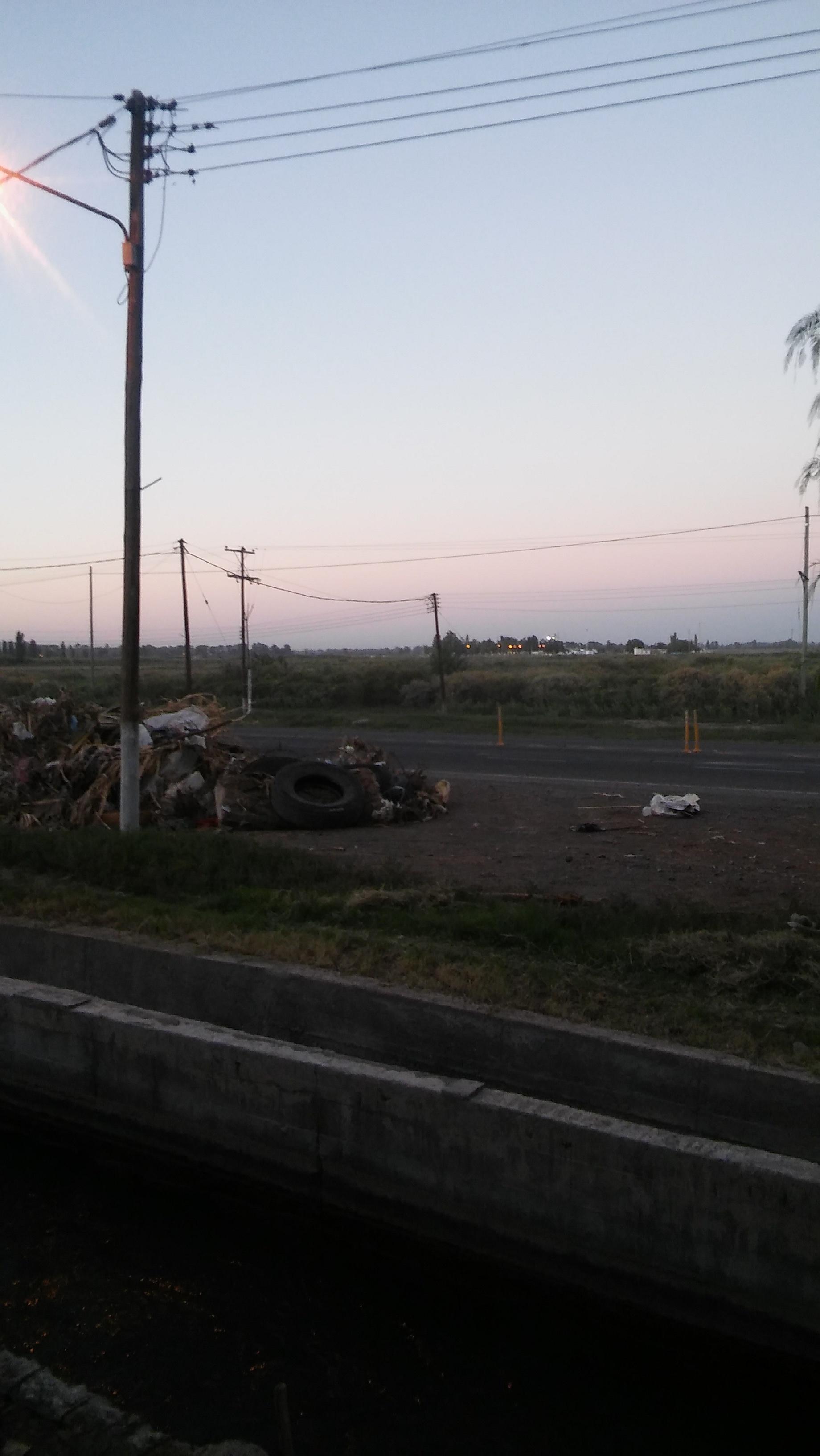 La imagen fue tomada en Las Chacritas, 9 de julio (a la altura del ingreso y egreso del aeropuerto Domingo Faustino Sarmiento) . Allí, se encuentran a menudo montañas de basura que sacan del regadío y quedan al costado por días y días.