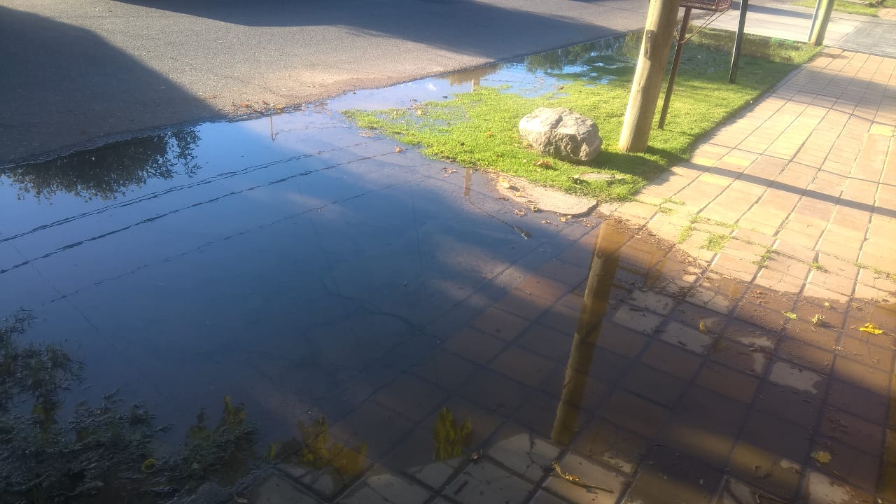 Vecinos enviaron una imagen y el siguiente mensaje: “Esta pérdida de agua es en el barrio Parque de Mayo, en capital. Hicimos los reclamos a OSSE hace tres días y no han aparecido. Se pierde agua y además genera esto que se ve en la foto”.