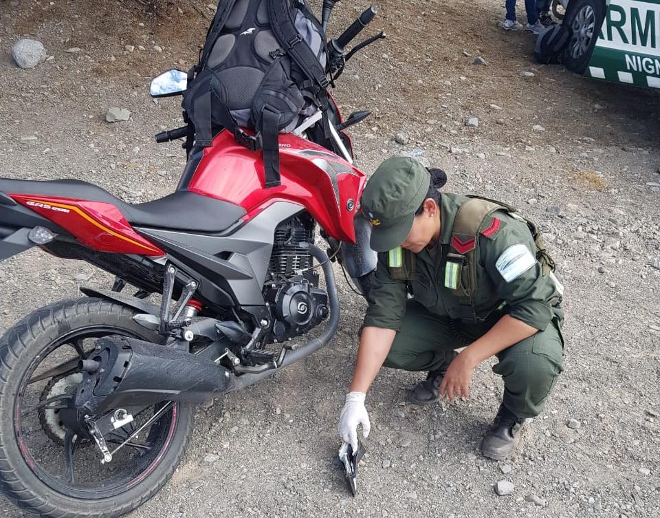 Un hombre que circulaba en moto en la zona del paraje Las Aguaditas, en Jáchal, fue sorprendido por un control de Gendarmería cuando llevaba droga en su billetera.