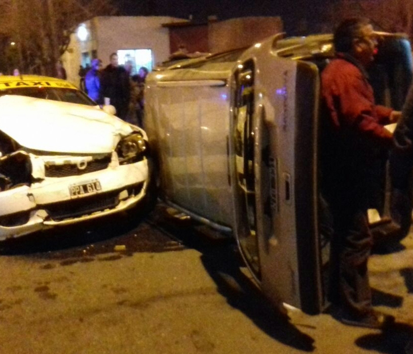 Un espectacular accidente se produjo a las 20.30 de ayer en la intersección, sin semáforos, de avenida Alem y calle Juan Jufré, en Capital. Un taxi y un Peugeot Partner chocaron en ese cruce y el utilitario acabó volcado sobre uno de sus costados. Los conductores de los vehículos fueron asistidos en la escena, informó la Policía.
