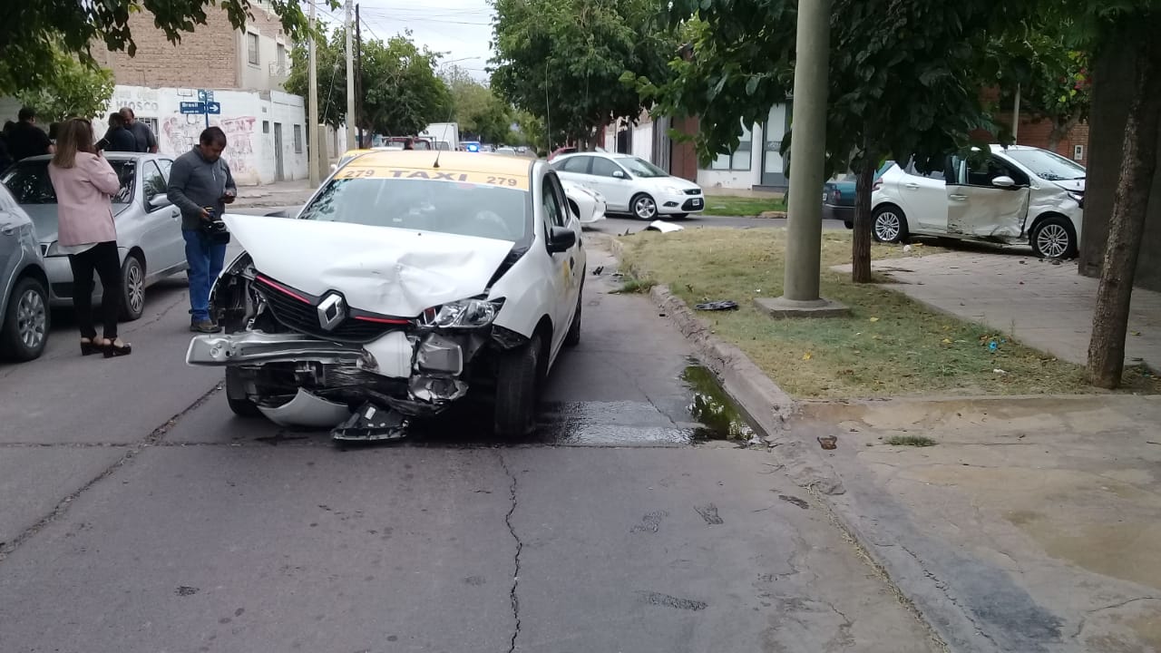 Según relataron testigos, el taxi circulaba por calle Brasil hacia el Este e impactó al Peugeot 208, que transitaba por Sarmiento hacia el Sur.