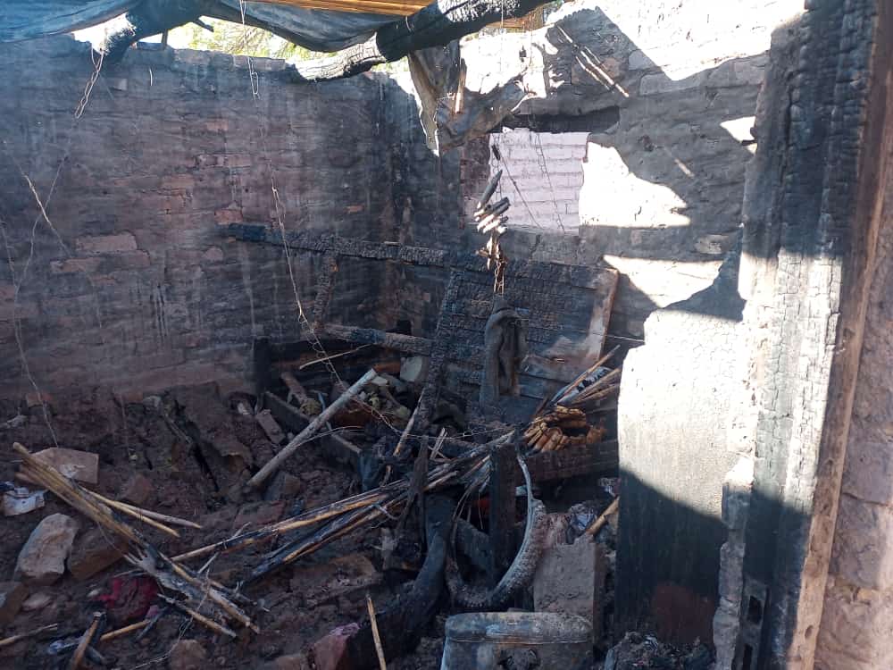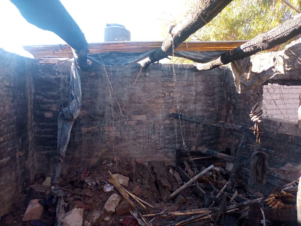 Un incendio arrasó con una humilde vivienda en la que vivía un matrimonio y sus 6 pequeños hijos. Se organizó una campaña solidaria para llevar indumentaria y alimentos a la familia que perdió todo.