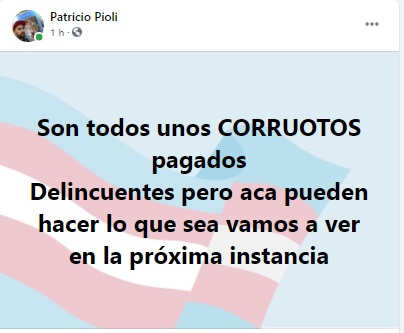Luego de recibir la condena, el tatuador se despachó con en las redes sociales. "Son todos unos CORRUPTOS pagados.