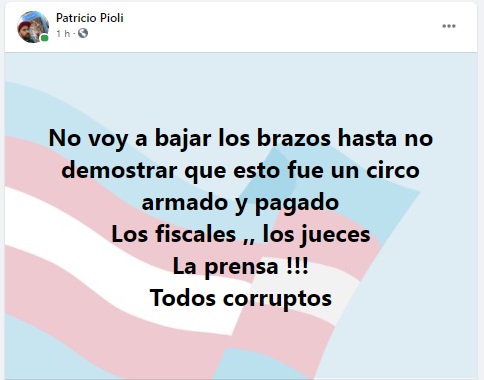 "No voy a bajar los brazos hasta no demostrar que esto fue un circo armado y pagado.Los fiscales, los jueces, la prensa! Todos corruptos", escribió en su cuenta de Facebook.