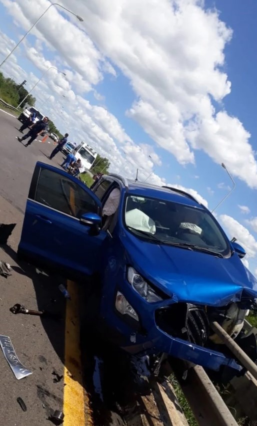 El impresionante accidente ocurrió el sábado por la mañana en un puente de la Ruta 12 a la altura del kilómetro 151. Por motivos que aún no se conocen, una Eco Sport perdió el control, chocó contra el guardarrail y se incrustó en un caño de metal que entró por la parte delantera del vehículo y sobresalió varios centímetros junto a la rueda de auxilio del baúl.