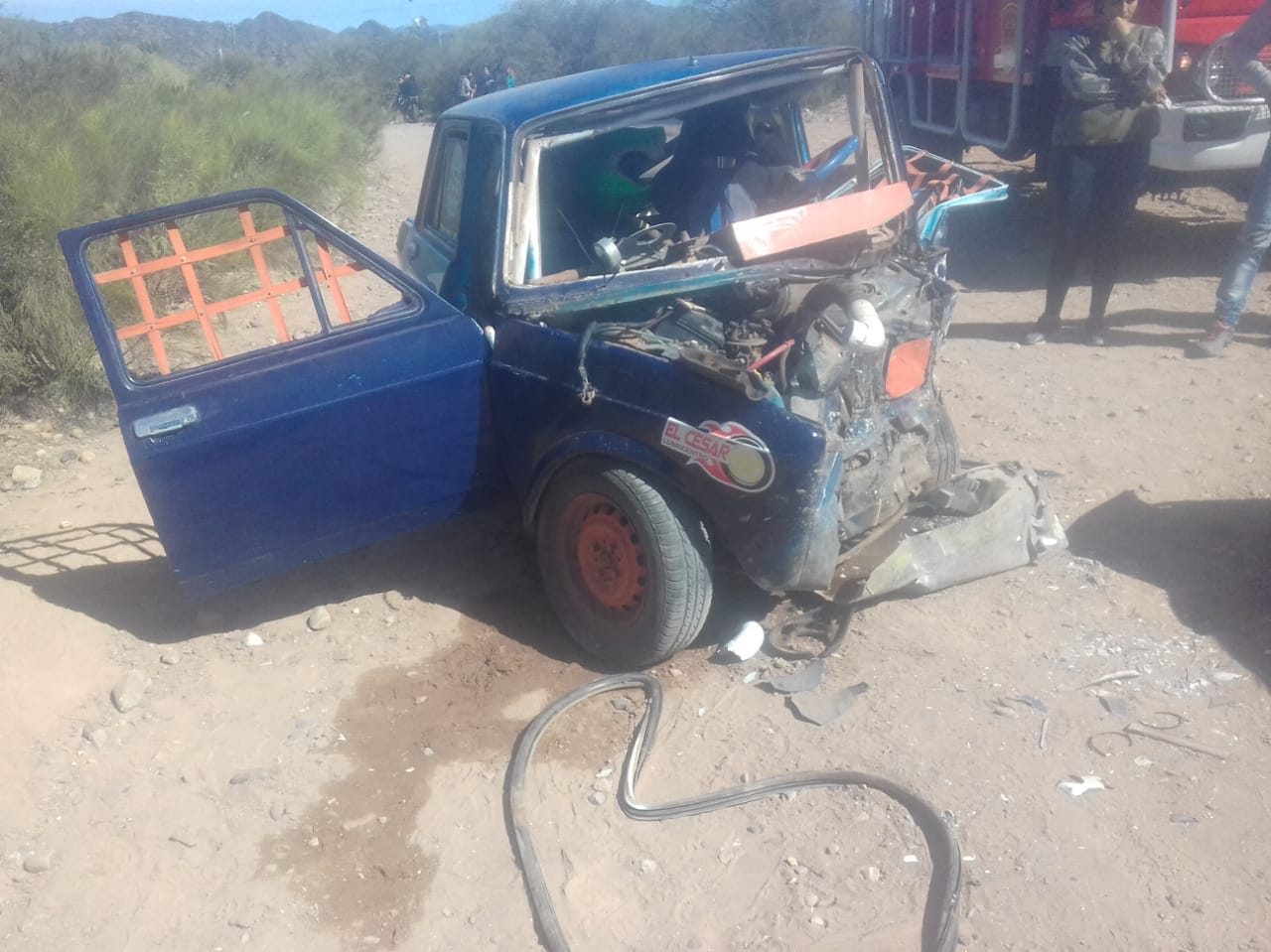 Un espectacular accidente de tránsitoentre un Renault Megane y un Fiat 128 preparado para competir se produjo en horas del mediodía en la zona de Usno, Valle Fértil. Dos autos impactaron de frente, dejando dos personas graves. Según trascendió, uno de los involucrados es el concejal Rodolfo Gil.