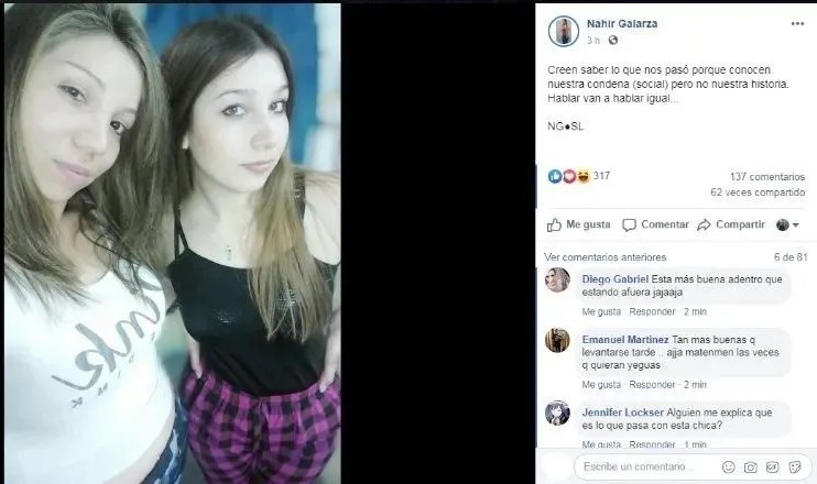 En ese posteo que realizó Galarza, Nahir hizo una declaración parecida a la de Yanina ya que mencionó "creen saber lo que nos pasó porque conocen nuestra condena pero no conocen nuestra historia".