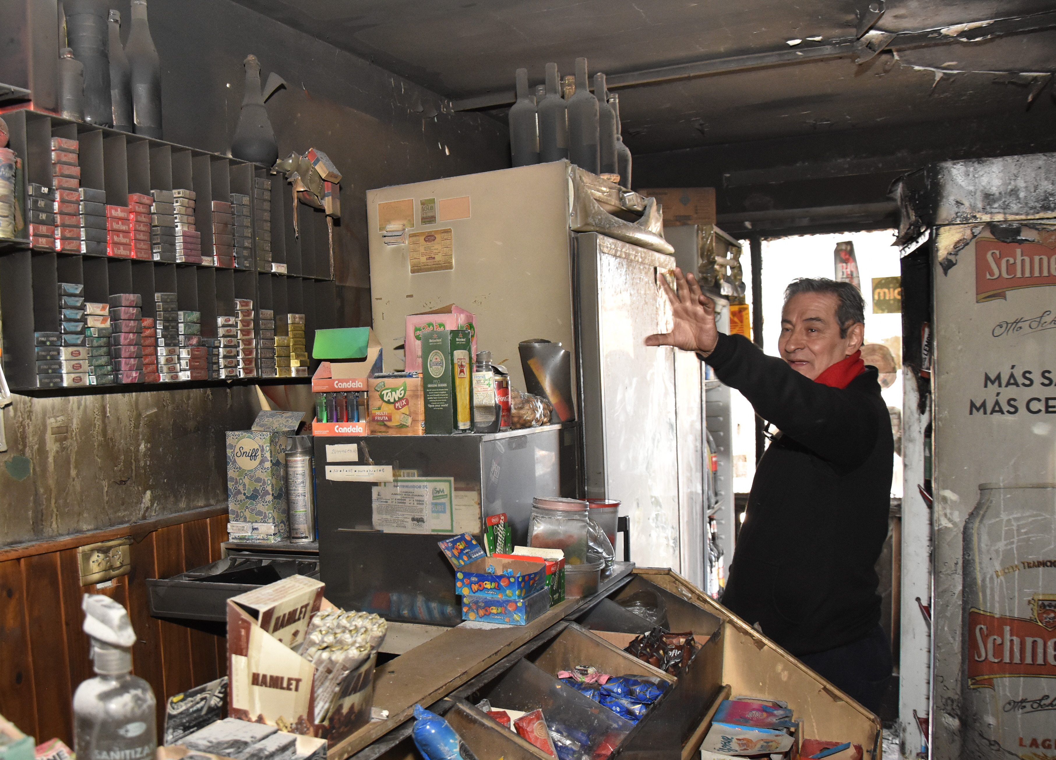 ¿Cómo se originaron las llamas? "Los policías me dijeron que fue intencional, alguien le prendió fuego, la verdad que no sé a qué atribuirlo, pero me han dejando en una situación bastante complicada porque si decido seguir tengo que hacer una inversión grande, hay que pintar, reponer mercadería y ver cómo están las heladeras… una quedó rota y ya no sirve, las otras están dañadas y habría que ver. No sé si voy a seguir o no en esto", dio ayer Raúl Eduardo Merino, el propietario del comercio atacado.