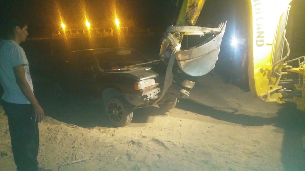 Luego, debieron mover el auto Volkswagen Gol con la retroexcavadora municipal, para trasladarlo a la comisaría departamental.