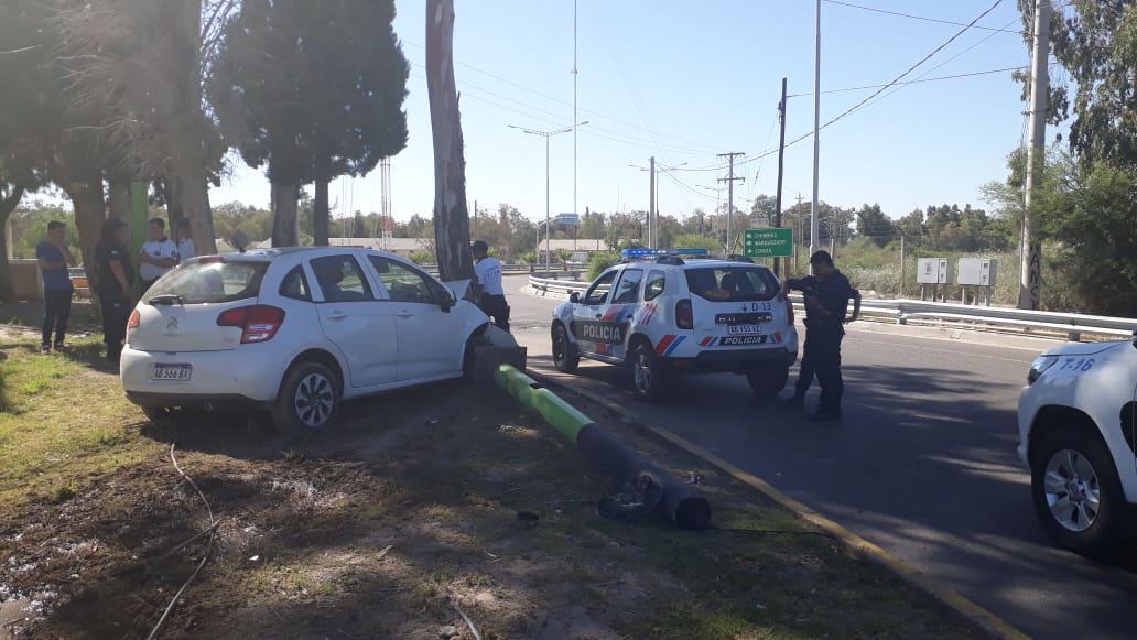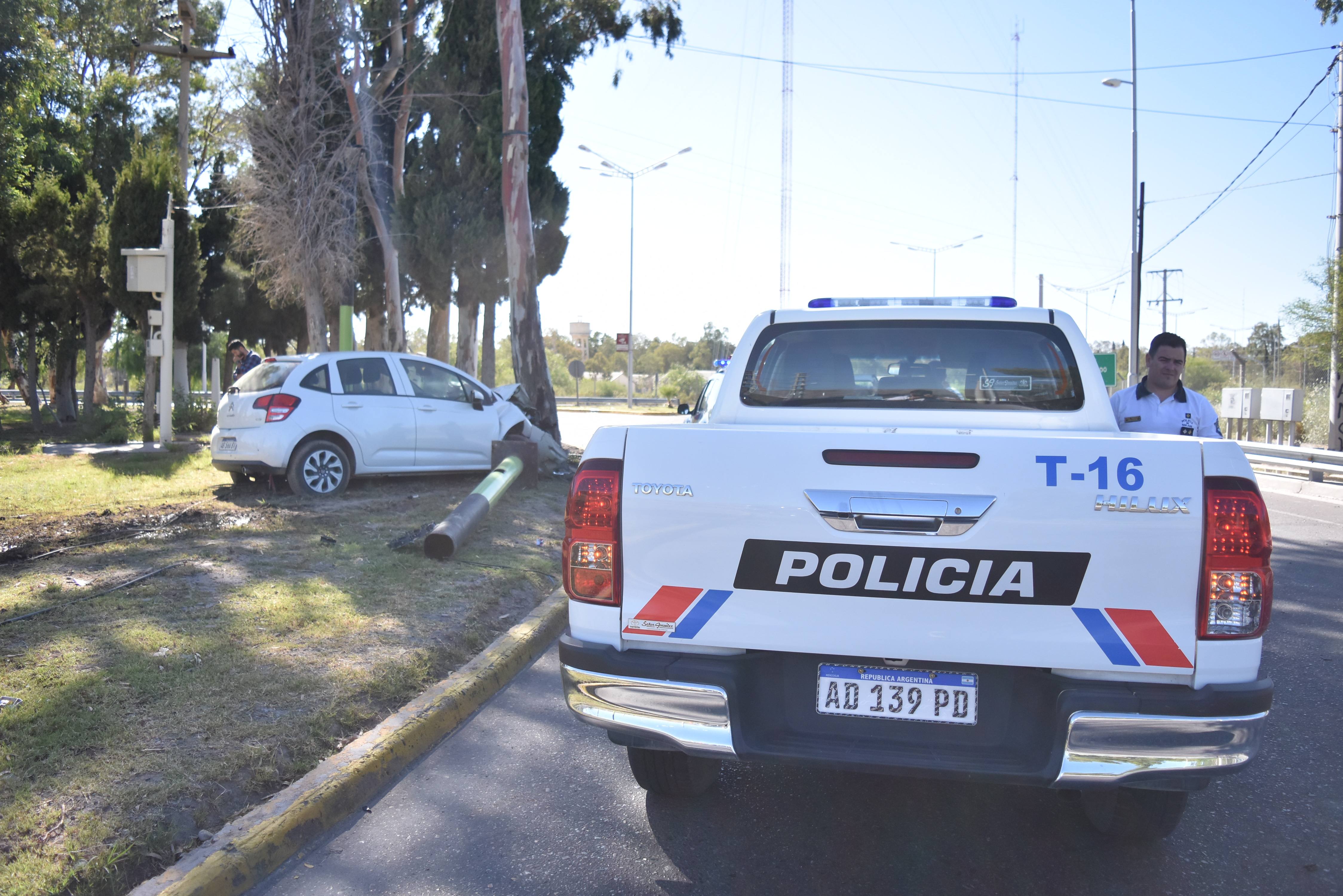 Un espectacular accidente de tránsito ocurrió en las primeras horas de este sábado, alrededor de las 8, en Ruta del Sol a la altura de calle Galíndez, en Rivadavia. El conductor de un vehículo perdió el control y en el raid derribó un poste y se estrelló contra un árbol.