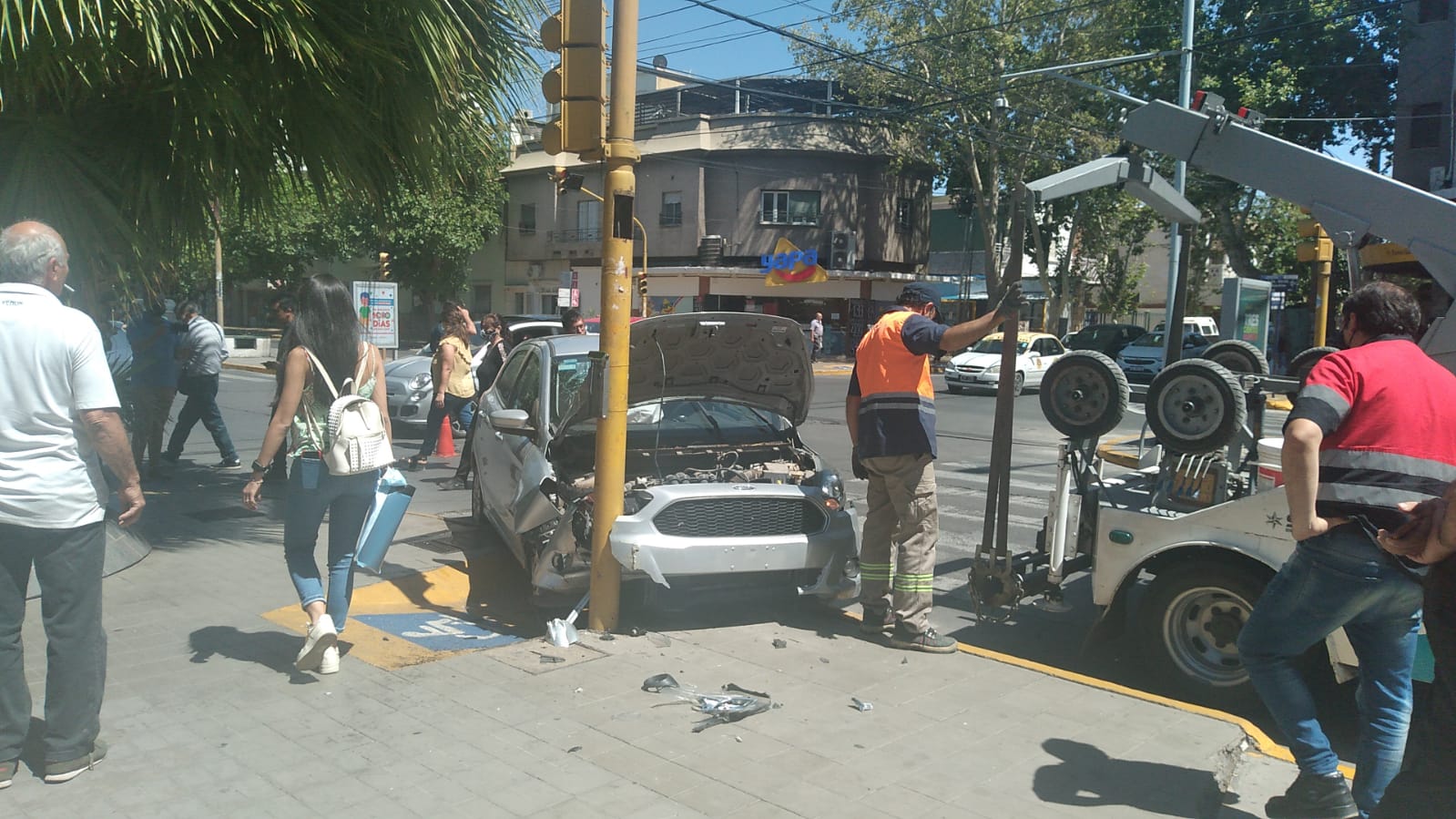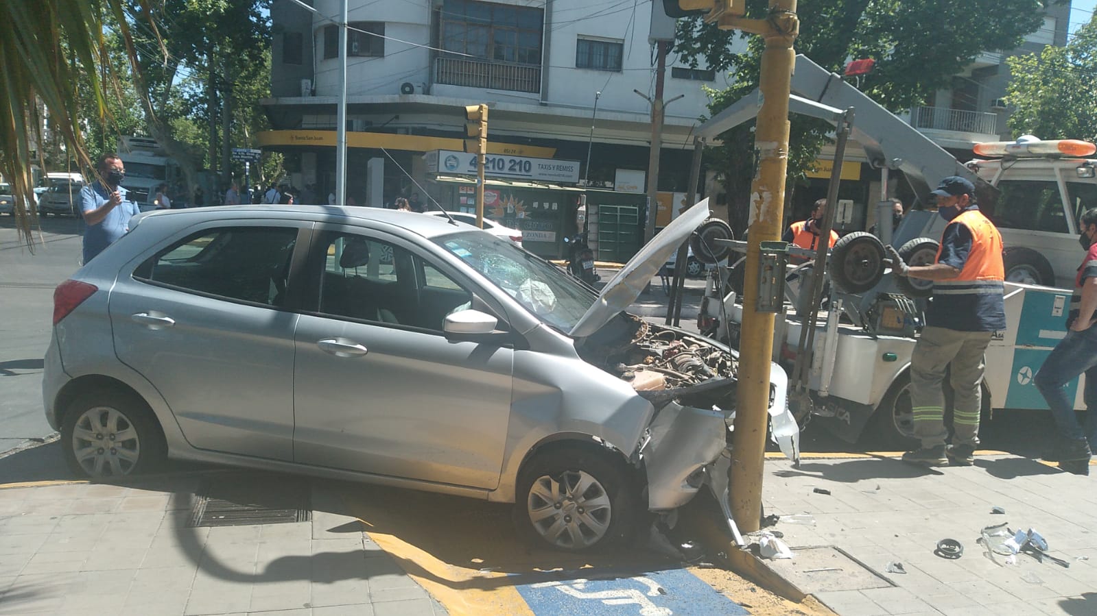 Un fuerte accidente en una esquina céntrica causó caos antes del mediodía de este miércoles. De acuerdo al testimonio de algunos testigos, el conductor de un Ford Ka terminó literalmente incrustado en un semáforo luego de una mala maniobra para evitar impactar con otro vehículo.