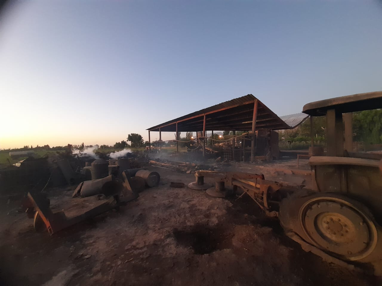 Un depósito con herramientas para el trabajo en el campo y tres tractores se quemaron por completo durante la madrugada de este jueves, en medio de un grave incendio ocurrido en Pocito, informaron Bomberos Voluntarios del departamento.