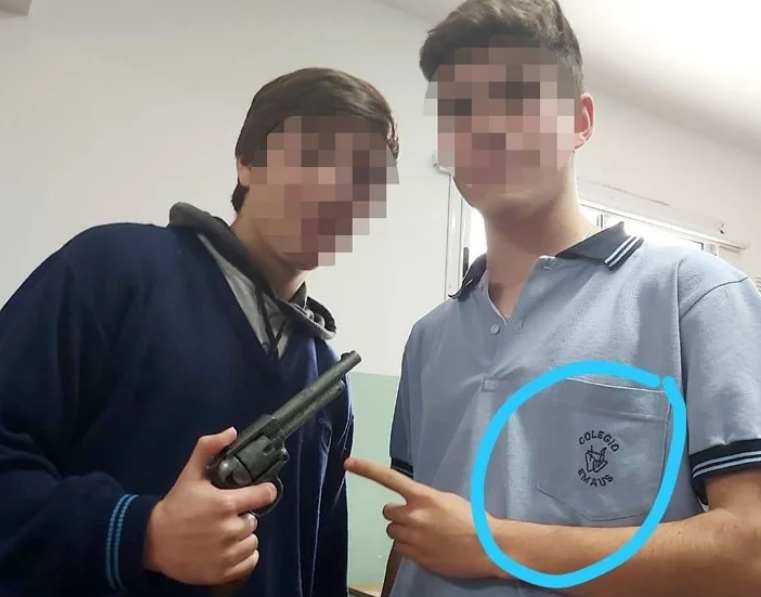 Un profesor escribe en el pizarrón de espaldas a sus alumnos e interactúa con uno de ellos, que pasó al frente. Mientras tanto, otro chico se levanta de su asiento, saca un arma y le apunta. Un segundo joven ríe nervioso, simula con sus dedos otro revólver y hace que dispara. Las imágenes fueron registradas por otro adolescente dentro del Colegio Privado Emaus, ubicado en Derqui y Dolores Prats, El Palomar. Ocurrieron antes de las vacaciones de invierno, las autoridades del instituto se enteraron después del receso escolar aunque prefirieron tomar medidas "hacia adentro" y no realizar la denuncia. Ahora, tras la viralización del video, se abrió una investigación de oficio.