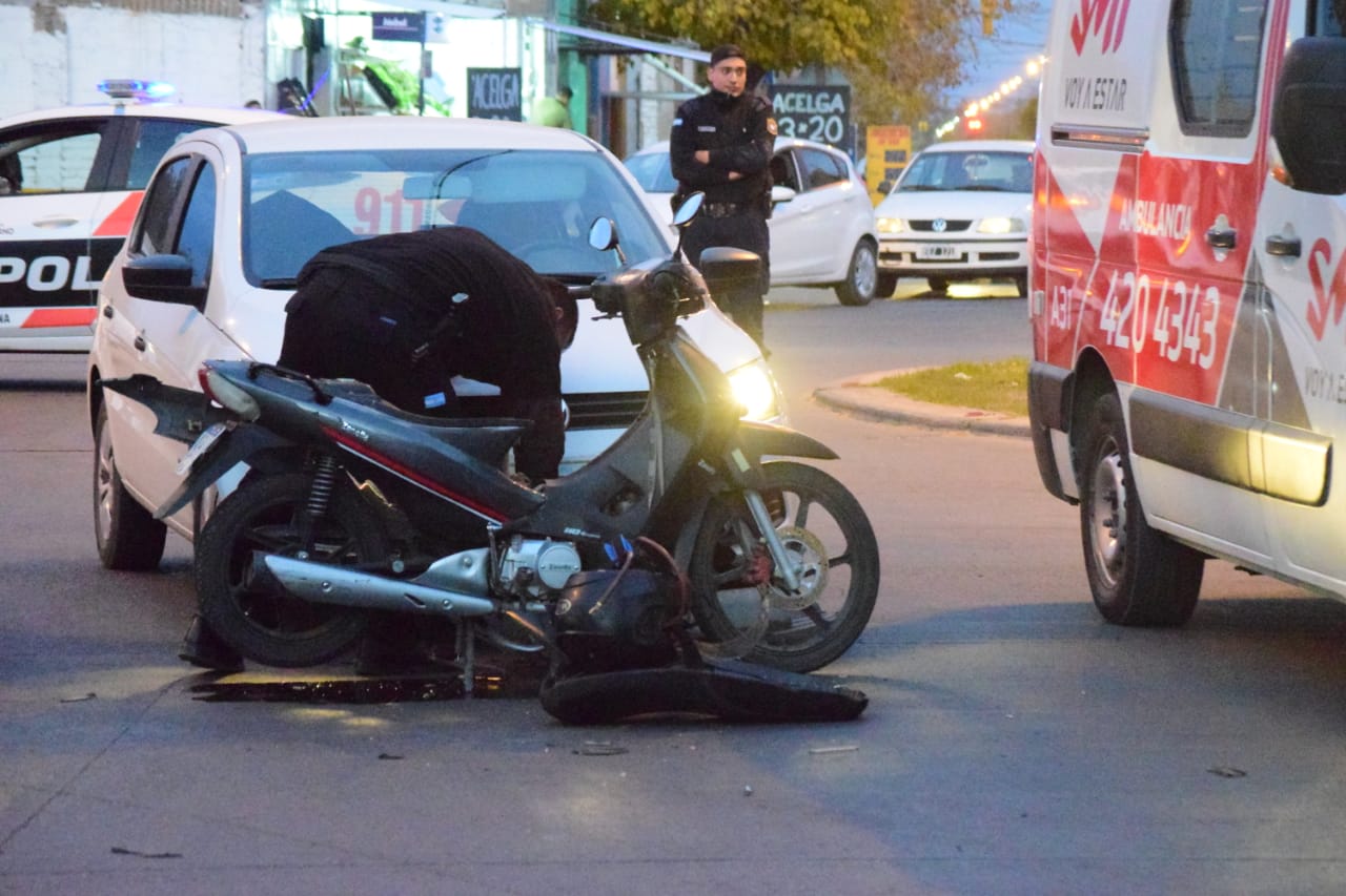 Un motociclista tuvo que ser hospitalizada tras protagonizar un espectacular choque en la rotonda de Conector Sur y República del Líbano, en Rawson.