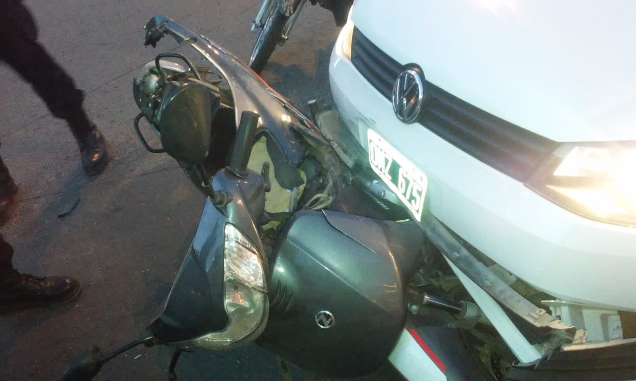 Según las fuentes, el auto que transitaba por República del Líbano impactó de costado a la moto Zanella 110cc que circulaba por Conector Sur y que quedó debajo de la trompa del Volkswagen.