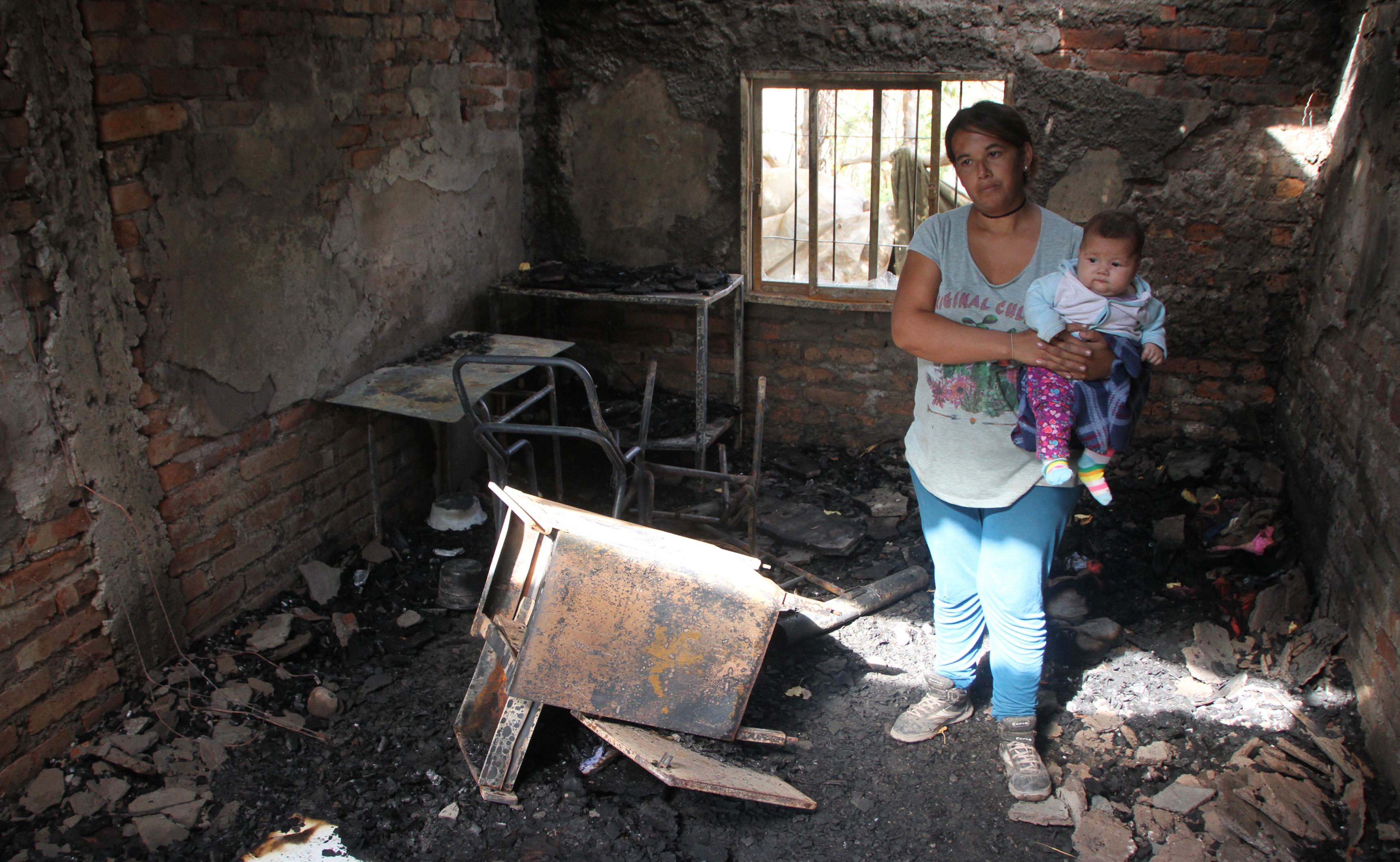 Las pérdidas fueron totales. Se quemaron una cucheta, una cama, una cuna, un ropero, toda la ropa, una cocina, dos mesas, dos sillas y otros objetos que había en la habitación. Además, se cayó parte del techo de machimbre y ahora la precaria construcción corre peligro de derrumbe, por lo que la familia no puede vivir más allí. Según Guzmán, van a estar en lo de su pareja, pero el lugar es chico y necesitan otra solución.