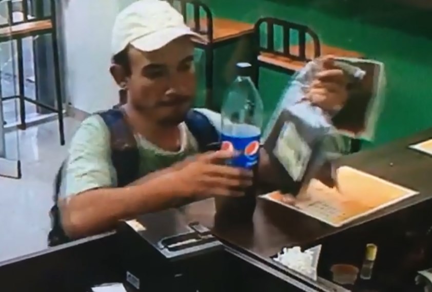 Todo ocurrió ayer, en un reconocido local de ventas de empanadas ubicado sobre Ignacio de la Roza a metros de calle España. En las imágenes se puede observar a un joven vendedor de bolsas de residuos caminando por la vereda junto a una bicicleta, cuando decide ingresar al comercio.
