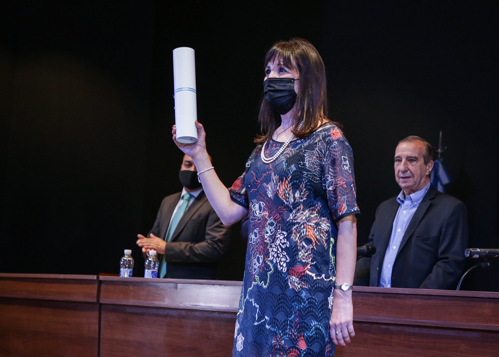 El juez federal con competencia electoral Miguel Gálvez, el fiscal federal Francisco Maldonado y el presidente de la Corte de Justicia local, Daniel Olivares Yapur, integrantes de la Junta Electoral Nacional, encabezaron hoy el acto de proclamación y entrega de diplomas a los tres diputados nacionales electos. Se tratan de Walberto Allende y Fabiola Aubone, del oficialista Frente de Todos, y Susana Laciar, de la alianza opositora Juntos por el Cambio. La actividad se desarrolló en el Auditorio Eloy Camus del Centro Cívico.