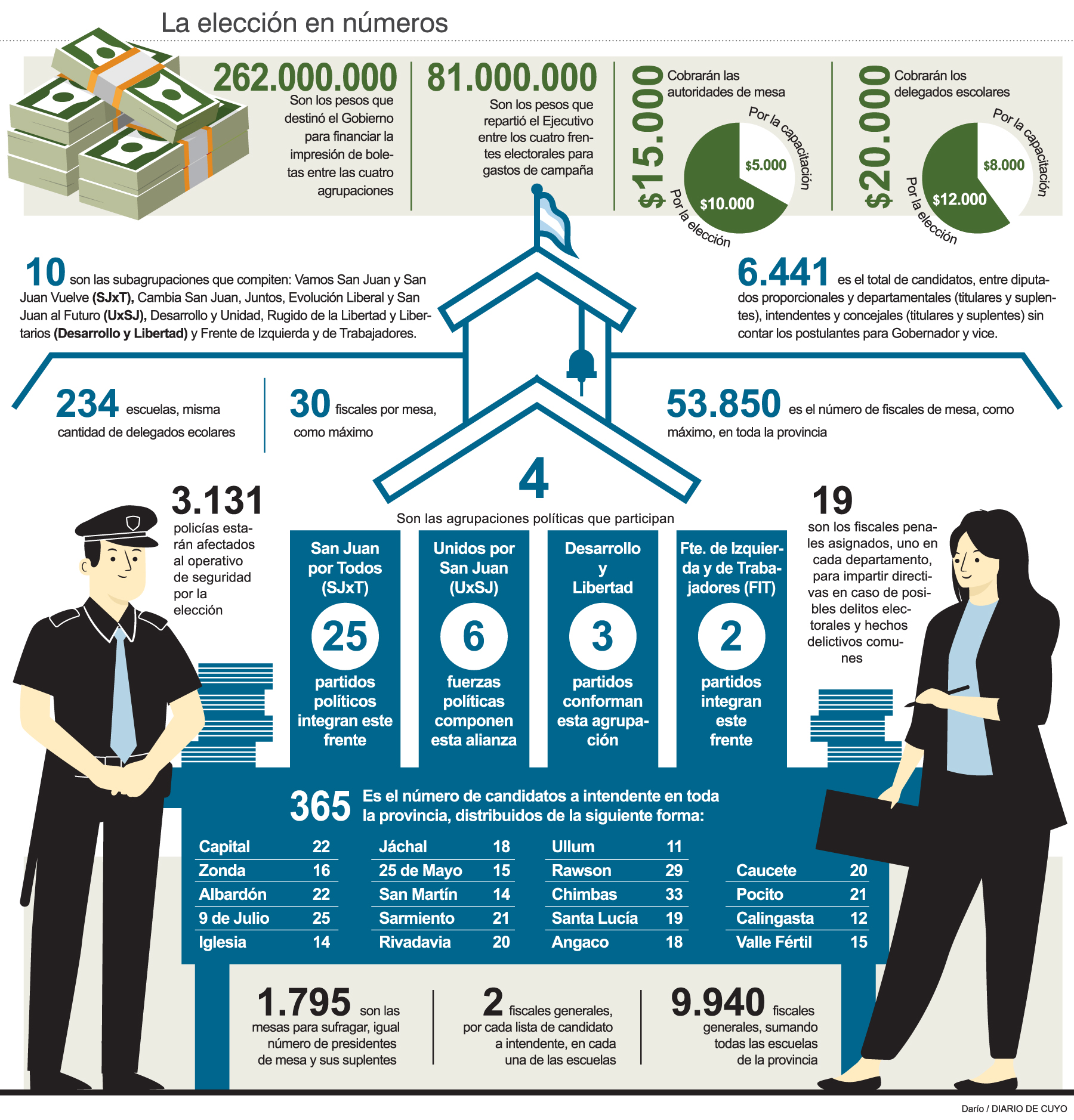 El Sistema de Participación Abierta y Democrática (Sipad), el cual es igual a Lemas, abrió el juego a la competencia, ya que permite la acumulación de votos de los candidatos de un mismo frente a favor del que salió primero en esa especie de interna, lo que le sirve a este último para competir con el rival de otra alianza que puede utilizar el mismo mecanismo de tributación. Así, se anotaron 6.461 postulantes (titulares y suplentes) para todos los cargos provinciales y municipales, a los que, en la contienda de hoy, hay que restarle 20 aspirantes: 10 que van por la Gobernación y 10 que pelean por la Vicegobernación. Esto último se debe a que la Corte Suprema de Justicia de la Nación suspendió los comicios para estos puestos hasta que defina si habilita o no la candidatura de Sergio Uñac.
