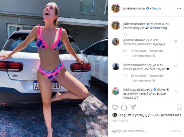 Julieta Nahir Calvo aprovechó del Sol con una colorida y sensual bikini. Si bien la pose cautivó a todos, un detalle en su rodilla se convirtió en el centro de atención. Sus seguidores notaron el detalle y no evitar comentárselo.
