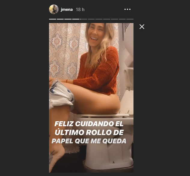 "Feliz cuidando el último rollo de papel que me queda", aseguró en el video, sentada sin ropa en el baño, comprobando que ya no tiene con qué limpiarse.