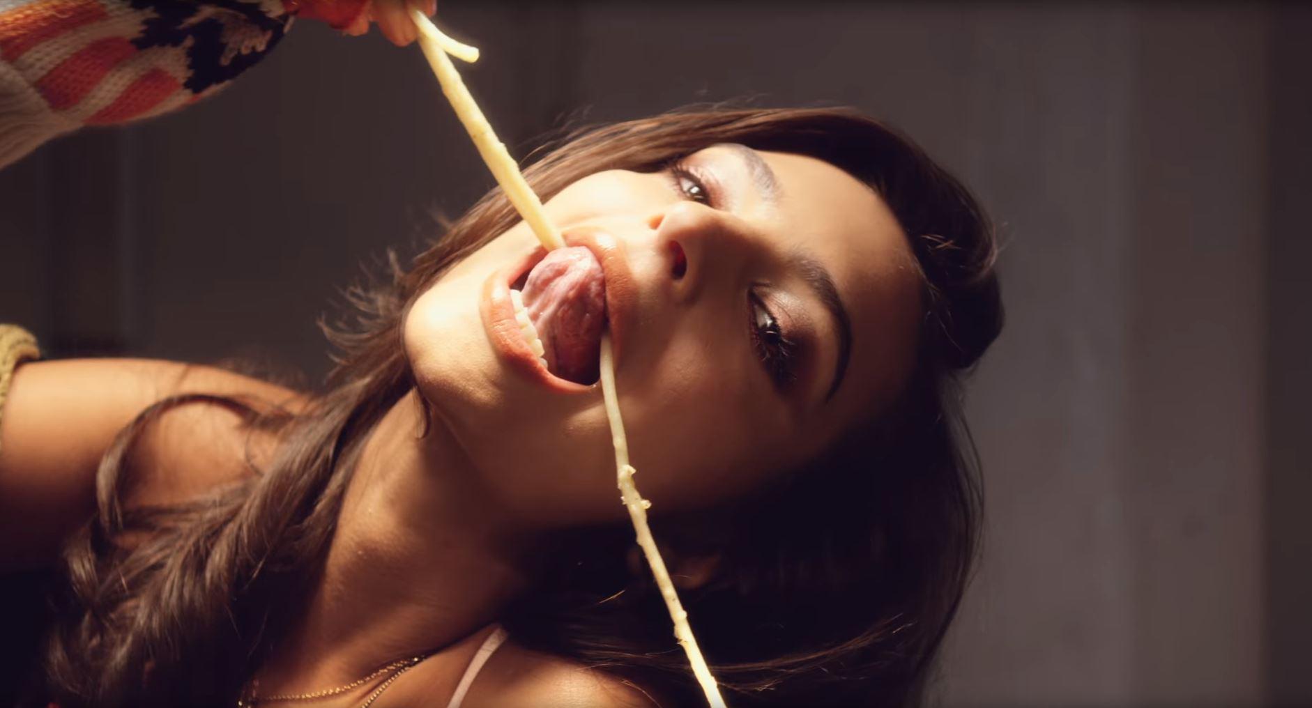 Emily Ratajkowski sabe cómo destacarse en el séptimo calendario anual de de la revista “Love”. La modelo y la actriz británica protagoniza un video en el que aparece sobre una mesa mientras disfruta de un plato de espagueti con un traje de lencería muy sexy.