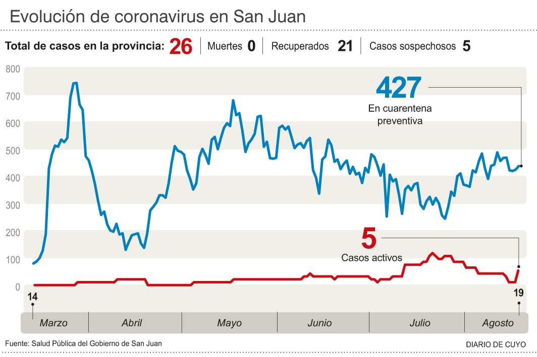 La ministra de Salud dijo que el resto de los sanjuaninos mantenga la calma y al mismo tiempo "continúe con la prevención, el distanciamiento social, el uso de cubrebocas, lavado de manos y alcohol en gel. Es importante que se respete todos los protocolos en los centros comerciales, deportivos y demás. El resto de la provincia está en la etapa de distanciamiento social y es imperioso que continuemos con las medidas preventivas para que se mantenga así".