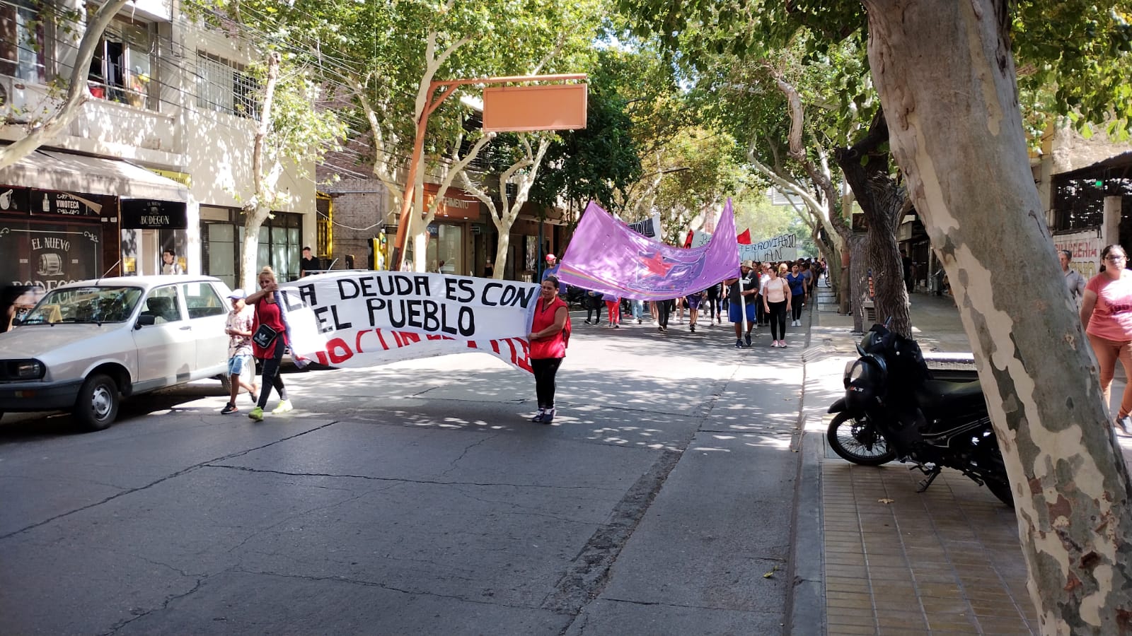 En la mañana de este viernes, beneficiarios del plan Potenciar Trabajo que forman parte de distintas agrupaciones en San Juan marcharon por el microcentro para pedir que se mantenga el programa. Según afirmaron, las autoridades "criminalizan su lucha", luego de la investigación de la Administración Federal de Ingresos Públicos (AFIP) que dio cuenta de incompatibilidades en beneficiarios del plan, como por ejemplo compra de dólar ahorro.