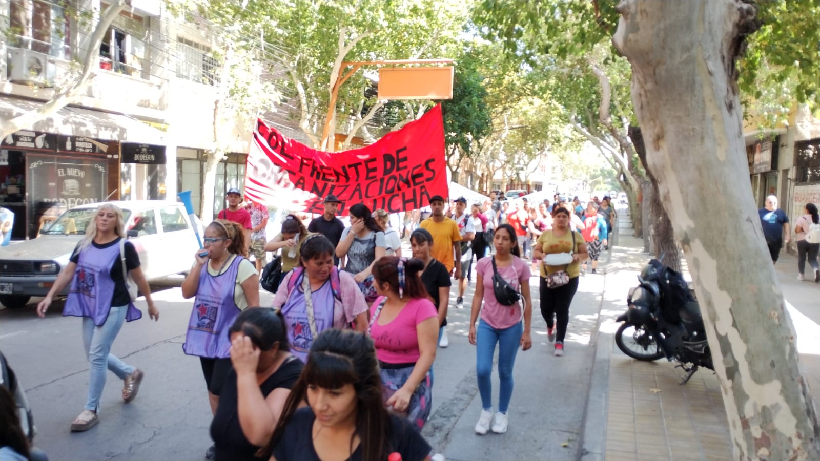 En las banderas que cargaron se pudieron leer mensajes como: "La deuda es con el pueblo y no con el FMI". Además de los nombres de las organizaciones entre las que figuraron el Frente Organización en Lucha y barrio Ferroviario, Frente de Organizaciones en Lucha.