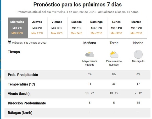Hoy la máxima trepará a los 23 grados con cielo nublado por la mañana y comenzará a despejarse en la tarde. El viento, leve, será del sector Este.