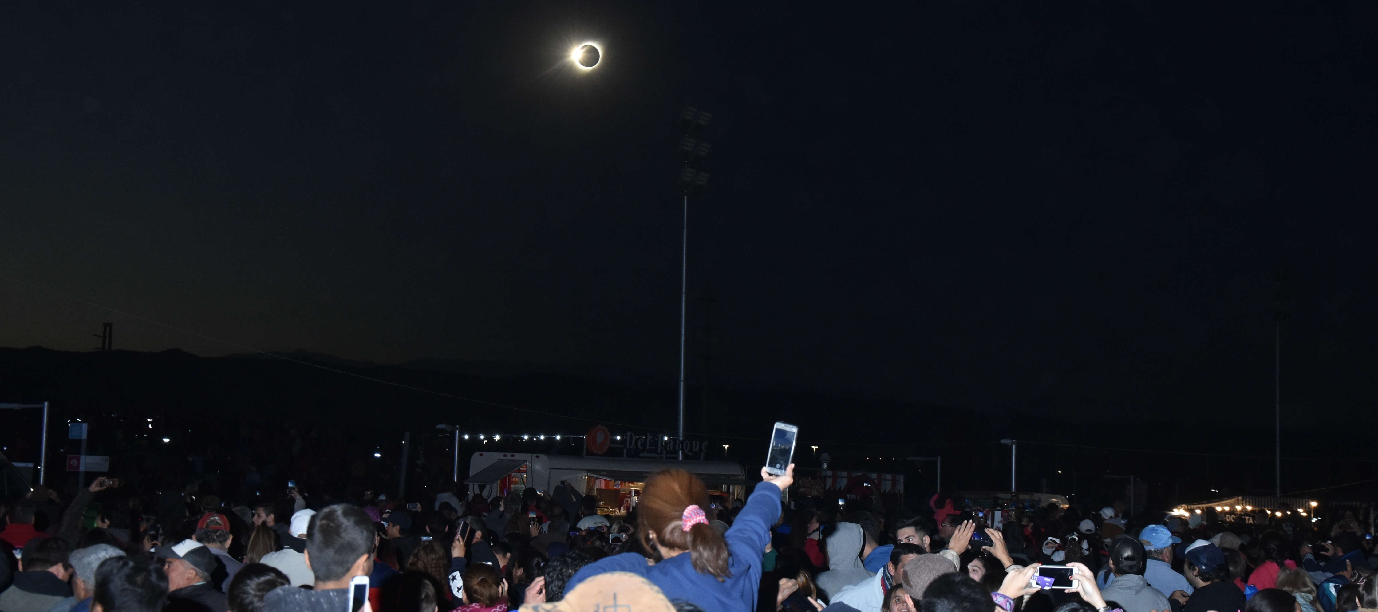 Ayer se vivió una jornada inolvidable en el Costanera Complejo Ferial San Juan, en Chimbas. Más de 30.000 personas concurrieron a este lugar para observar el eclipse. Con creatividad y cuenta regresiva esperaron que ocurriera este fenómeno que emocionó a todos los presentes.