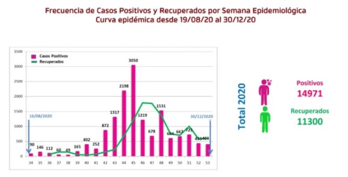 Teniendo en cuenta los casos registrados en la provincia desde el 19 de agosto hasta el día 30 de diciembre, Jofré indicó que, los casos de Covid positivos a la semana epidemiológico 53 (hasta el 30 de diciembre) fueron 14.971, de los cuales se recuperaron 11.300 personas.