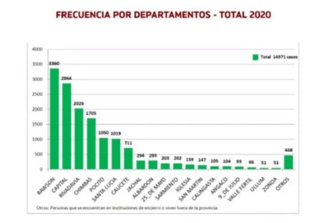 Al referirse a la cantidad de casos registrados en cada uno de los departamentos, Jofré afirmó que, la mayor cantidad de contagios se produjo en Rawson y lo siguieron Capital, Rivadavia y Chimbas: