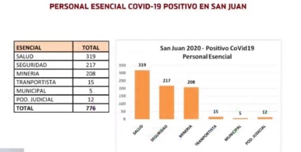 En cuanto al personal considerado esencial que se contagió durante el 2020, se detalló que fueron 776 personas, divididas del siguiente modo: