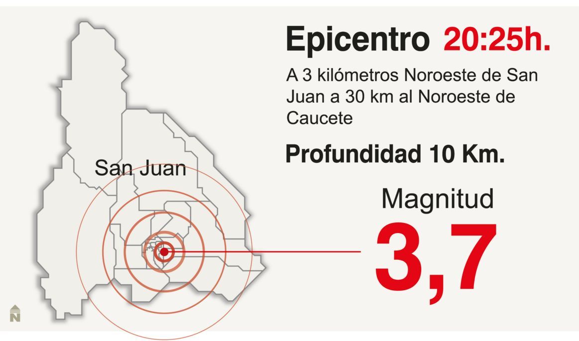 Según informó el Inpres, ocurrió a las 20:25:01 de hoy y el epicentro fue a 3 km al O de San Juan, 155 km al N de Mendoza, 30 km al NO de Caucete. -31.500 (lat) -68.540 (long).
