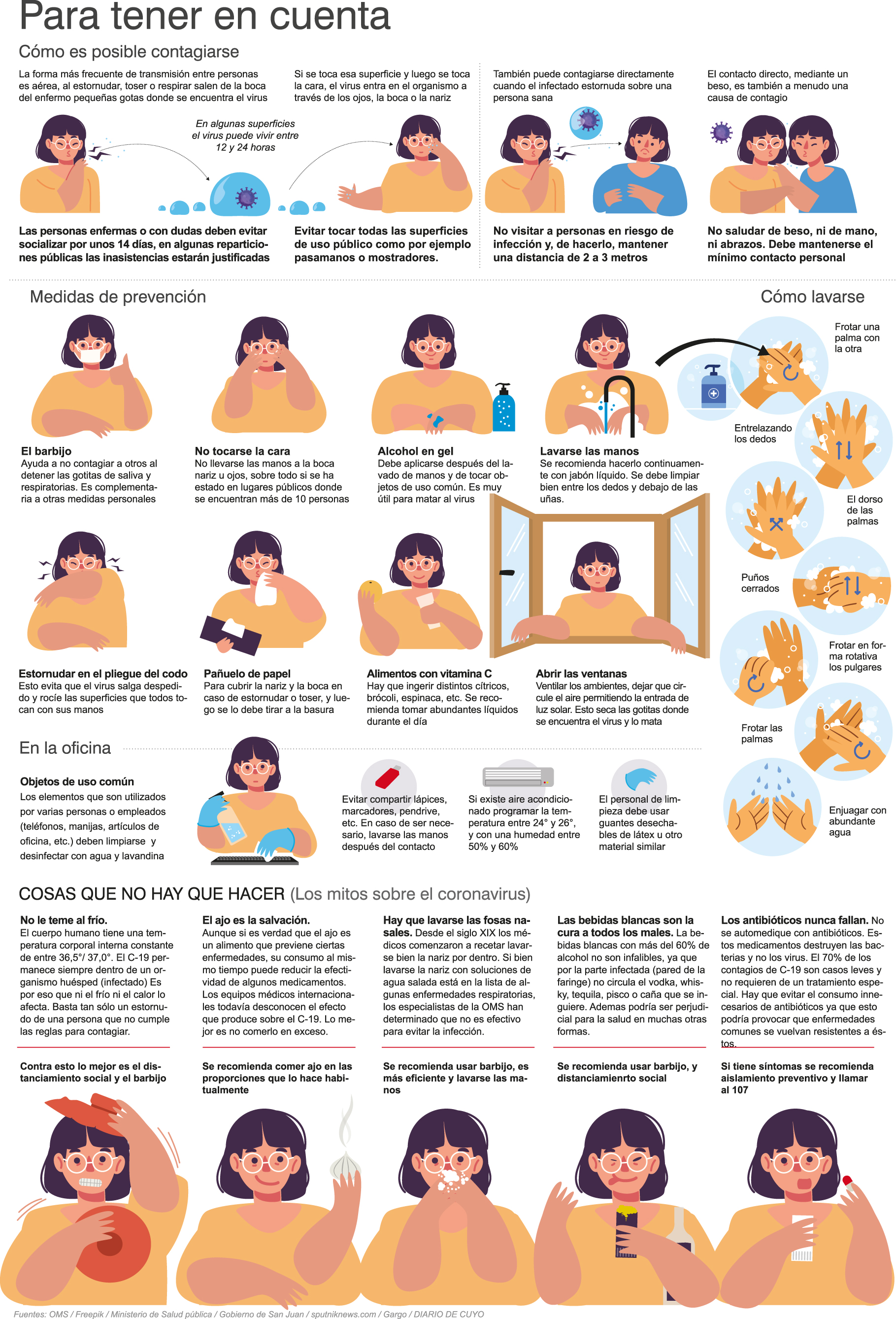 Los cuidados para prevenir la enfermedad fueron parte de dos preguntas de la encuesta. Una de ellas fue "¿Empezaste a cuidarte más después de conocer lo de Caucete?". El 77% dijo que sí, mientras que el 15% dijo que no y el 8% restante, que "un poco". "Antes de que se decretara la Fase 1 ya había decidido con mi familia dejar las reuniones sociales y no salir para nada de casa", comentó en este sentido Karina Farías, de Rivadavia. La otra pregunta que se hizo en relación a los cuidados fue para saber qué medidas de prevención habían incrementado. Las tres opciones más elegidas por los lectores fueron "uso de tapaboca", "distanciamiento social" y "desinfección de objetos", que fueron seleccionadas por el 27%, el 16% y el 11%, respectivamente.