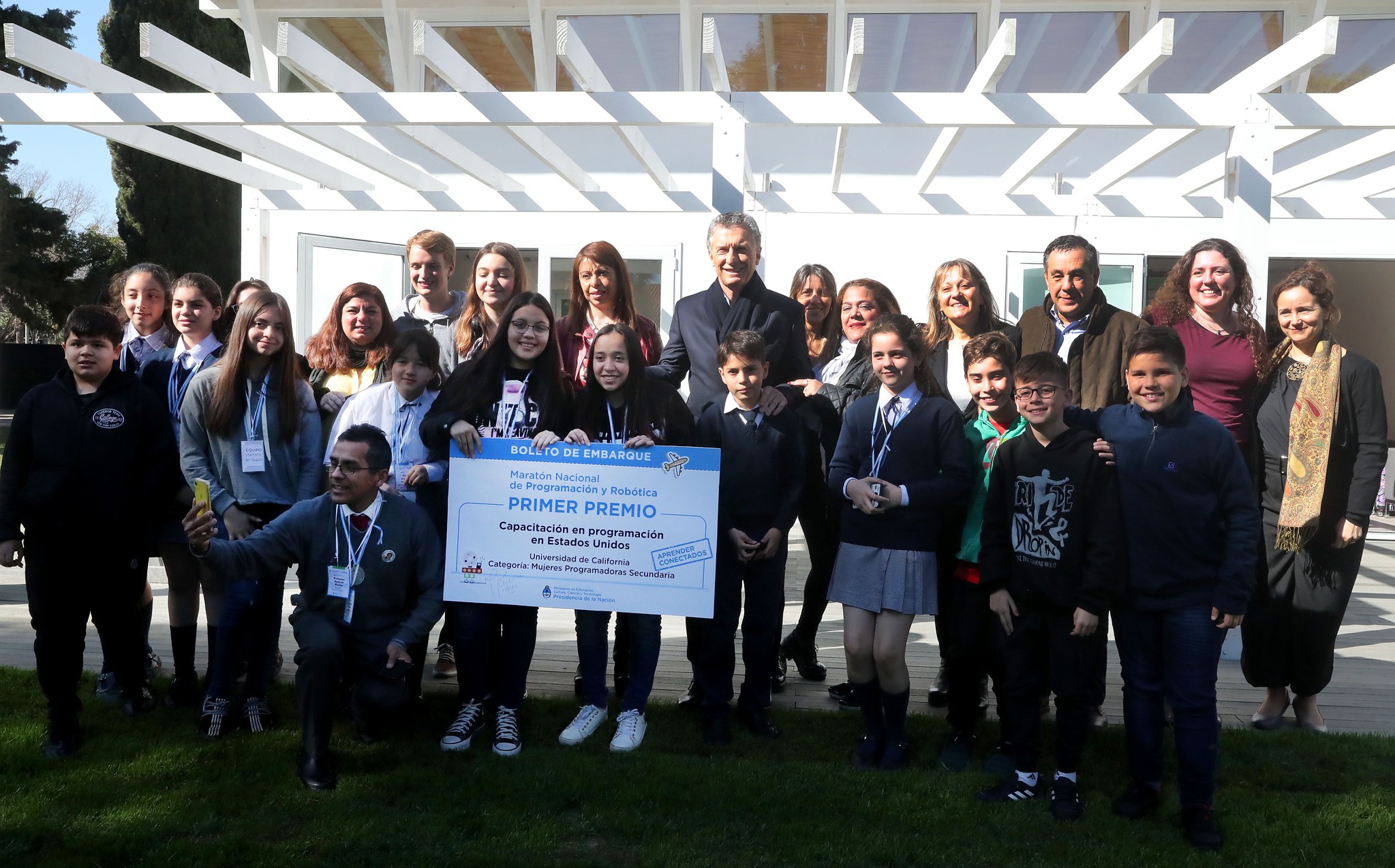 Este viernes, Mauricio Macri recibió a los integrantes de los 6 equipos campeones de la 2da edición del Maratón Nacional de Programación y Robótica que organiza el Ministerio de Educación, Cultura, Ciencia y Tecnología y que contó con la participación más de 9.000 alumnos y 1.200 docentes de 915 escuelas públicas de todo el país. En la oportunidad, los alumnos sanjuaninos de la Normal Superior Sarmiento ("Team Supreme") le explicaron al Presidente en qué consistió su trabajo.